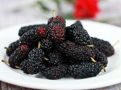 桑葚,又称桑仁、黑武葚、桑实、桑果等,为桑科落叶乔木桑树的成熟果实,我国大部分地区均有栽培,每年4~6月,桑葚呈红紫色时采收,晒干或略蒸后晒干备用。成熟的桑葚质油润,富有糖性,味微酸而甜,入食以个大、肉厚,紫红色,糖性足者为佳,故民间有“五月桑葚赛人参”之说。