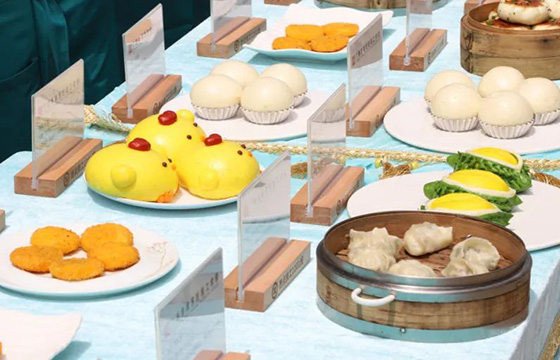 2、双色馒头、花卷、四喜饺、麻花、肠粉、糯米糍、驴打滚、红豆酥、开口枣、牛耳朵、空心大麻球、南瓜饼、脆皮年糕、桂花糕等